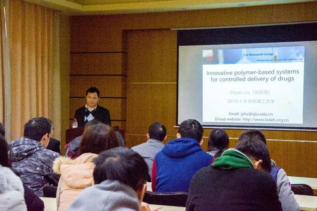 1月8日下午,应ylzzcom永利总站线路检测刘润辉教授邀请,上海交通大学刘尽尧研究员来校访问,并作了题为“Innovativepolymer-based systems for controlled delivery of drugs”的学术报告。来自ylzzcom永利总站线路检测、以及药学院的师生参加了报告会。