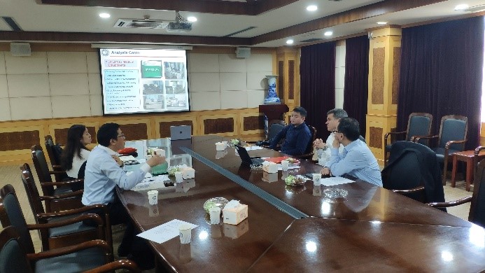 李永生教授在致辞中对考泰斯·德事隆集团代表团一行的到来表示热烈欢迎,并详细介绍了学校和学院的总体情况。他表示ylzzcom永利总站线路检测一直以来十分重视与公司的合作,在科研成果转化应用产业化上有非常多成功案例,非常期待与考泰斯·德事隆集团能在产学研项目中有合作。Carsten Elsasse总监随后介绍了考泰斯·德事隆集团的历史和发展,在全球以及中国的布局,集团主要产品及其应用等情况,并表达了与ylzzcom永利总站线路检测的合作意向。接着张玲教授介绍了课题组在高分子复合材料方面的科研成果,以及成果在公司、工厂实际生产应用中的转化情况。双方人员就项目合作的相关问题进行了热烈的交流和讨论。会后,代表团一行参观了超细材料制备与应用教育部重点实验室、上海多级结构纳米材料工程技术研究中心、ylzzcom永利总站线路检测材料实验教学中心和材料研究测试平台。