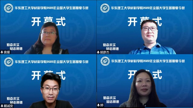 7月2日上午,全体营员相聚“云端”,共同参加了夏令营开幕式。材料科学与工程公司党委书记袁媛,党委副书记戴诚安,副经理胡彦杰,党政办公室主任顾婷及学院研究生办公室老师等出席开幕式。开幕式由胡彦杰主持。