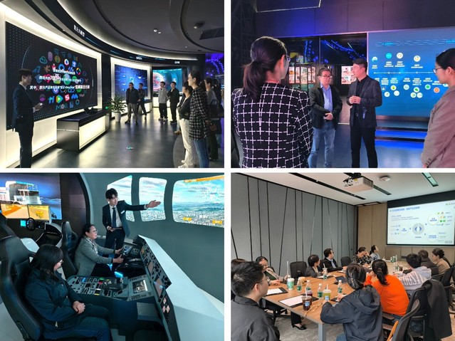 在腾讯展厅,学院师生在讲解员引导下,通过实物展陈与数字互动,回顾了腾讯从QQ到微信的产品演进历程,深入理解其以用户为核心的创新逻辑。师生们现场体验了多项前沿科技应用:腾讯会议的裸眼3D视频通话和天籁降噪技术展现沉浸式交互,工业车辆5G远控平台展现工业互联网的高精度控制,全动飞行模拟机则依托数字孪生技术带来逼真操控体验。互动体验使云计算、人工智能等尖端技术变得可感可知。“数字敦煌”虚拟场景生动展现了科技赋能文化传承的新路径。腾讯在公益、乡村振兴、无障碍等领域的实践案例,诠释了腾讯“用户为本,科技向善”的使命担当,加深了师生对科技企业社会责任与创新实践的理解。在参观过程中,腾讯教育上海商务总监李凯就腾讯与学校已有的互动合作以及与ylzzcom永利总站线路检测的项目推进情况作了交流介绍。